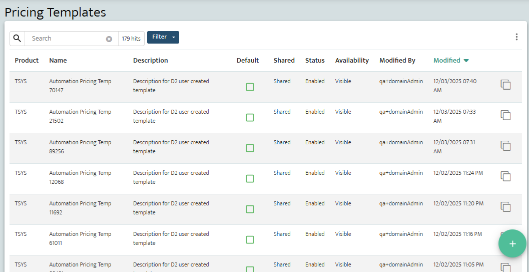 Globally Shared Pricing Templates are visible and accessible to all partners. They can be duplicated, renamed, and modified to suit partner-specific needs.